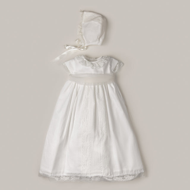 Los detalles de puntilla en la falda proporcionan un encanto adicional y un toque clásico, creando una prenda única y encantadora. Estos elementos decorativos resaltan la atención al detalle y la artesanía cuidadosa que caracteriza al faldón.