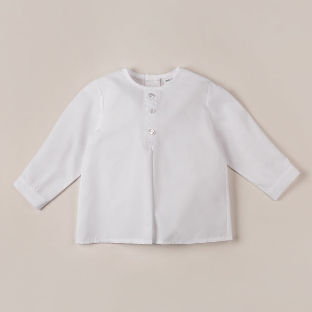 Camisa de manga larga en batista finita ideal para el verano para llevar por fuera de shorts y ranitas.
