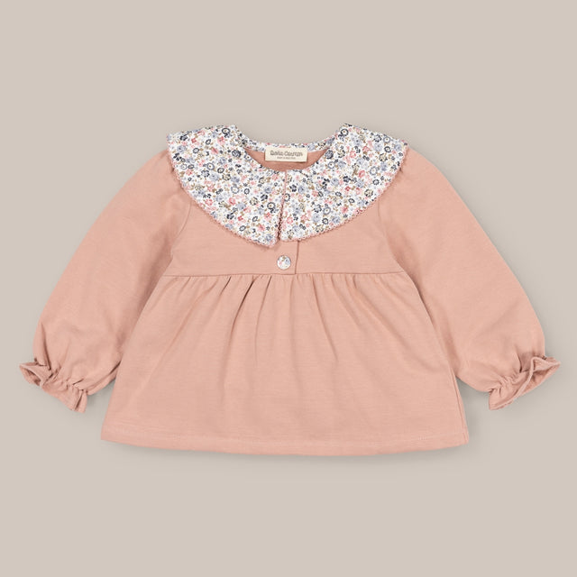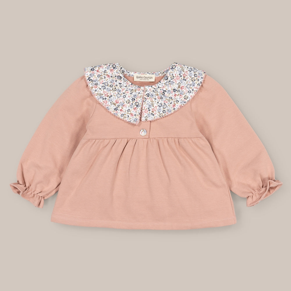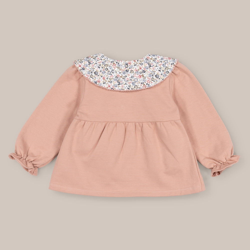 Jersey  de niña en algodón con detalle de cuello estampado y botonadura delantera,
