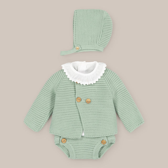 Puedes comprar este conjunto de punto para bebé online y recibirlo en casa en un abrir y cerrar de ojos. Forma parte de los exclusivos conjuntos de punto para bebé Doña Carmen, creados con mimo y detalle.