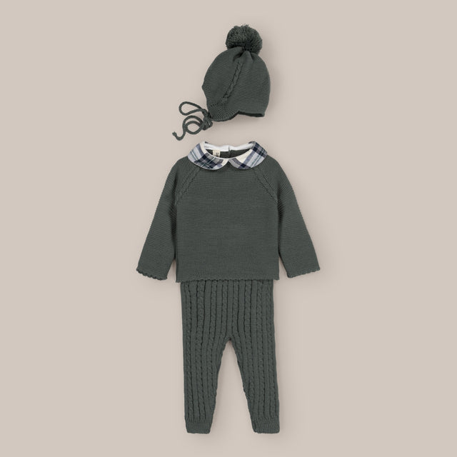 Completísimo traje de bebé formado por bonito jersey con detalles cuidadosamente pensados que aportan un extra de estilo.