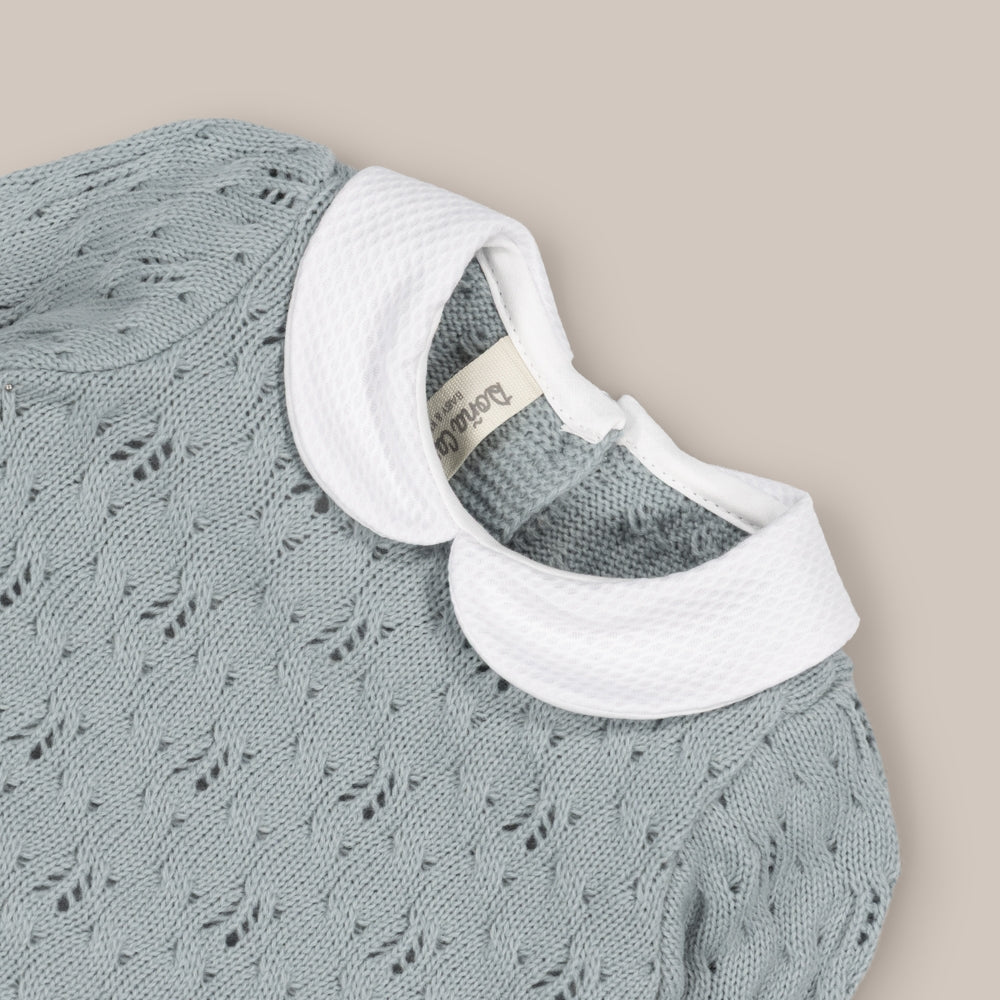 Completísimo traje de bebé formado por bonito jersey con detalles cuidadosamente pensados que aportan un extra de estilo.