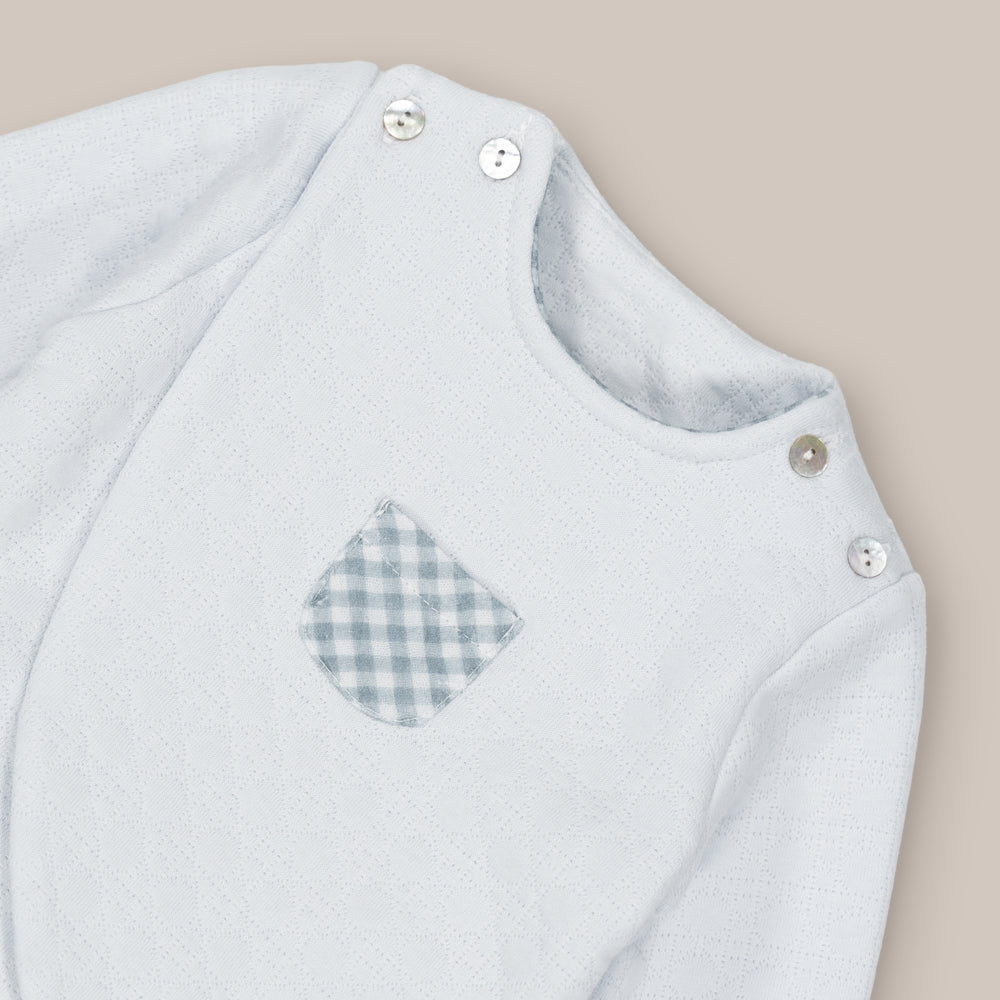 Traje de bebé formado por bonito jersey con detalles cuidadosamente pensados como su bolsillo central,que aportan un extra de estilo.