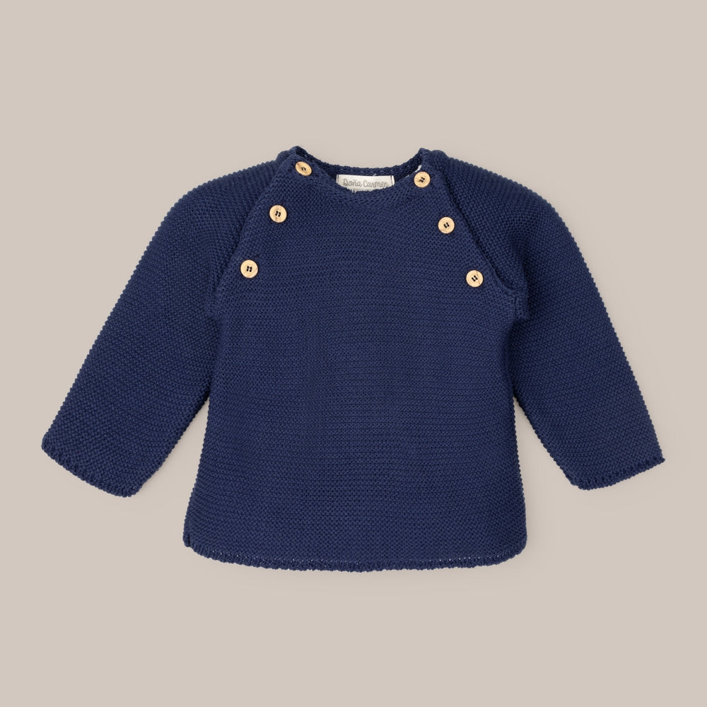 El diseño destaca por su simplicidad y elegancia, con una botonadura de madera en ambos hombros que no solo añade un toque rústico y natural, sino que también facilita el proceso de poner y quitar la prenda.