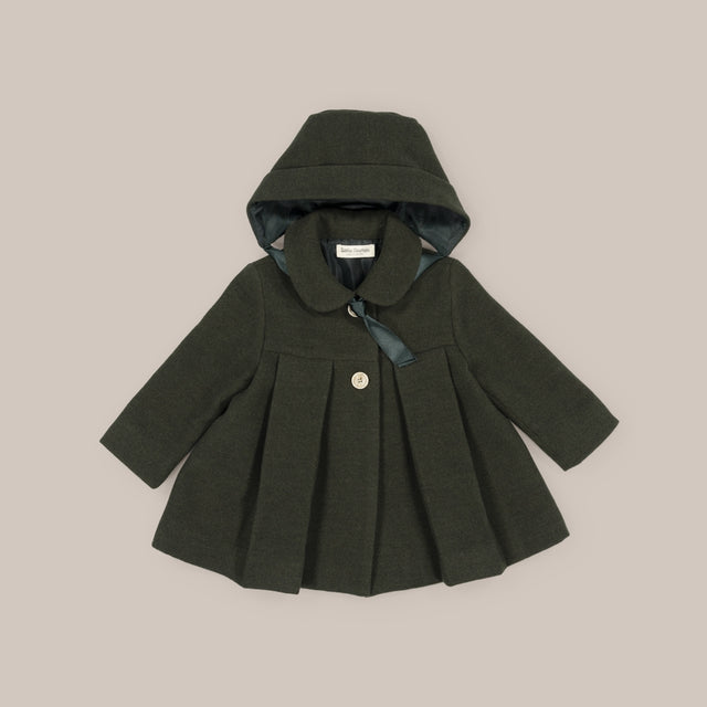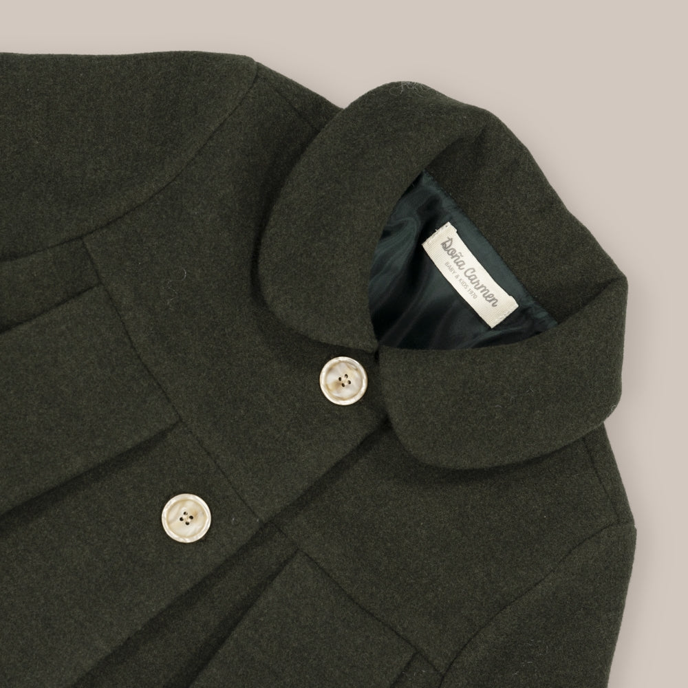 Este abrigo de paño infantil es una prenda elegante y clásica para las más pequeñas. Su diseño combina la calidez del paño con la elegancia de éste tejido, lo que lo hace perfecto para ocasiones especiales o para lucir con estilo en días más frescos.