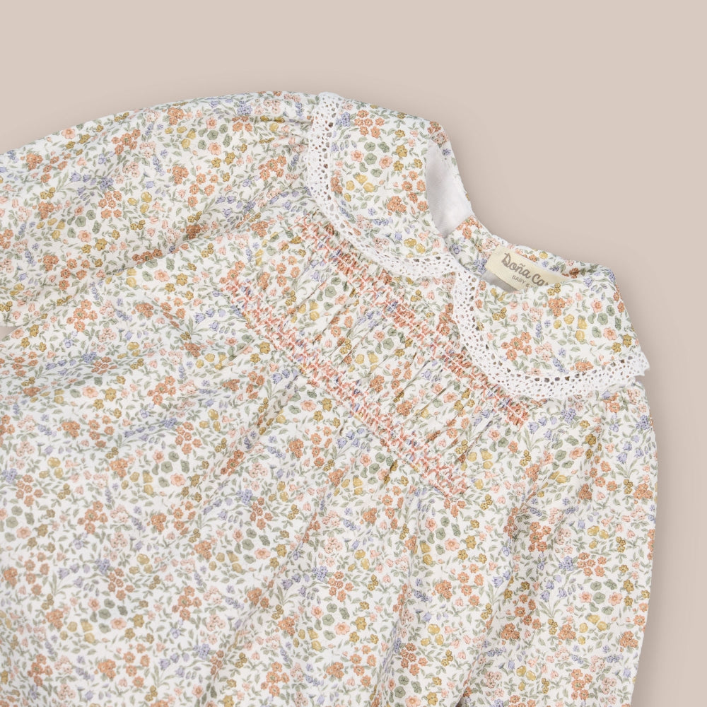 Destaca por su cuello amplio con ondas y su estampado floral de inspiración clásica, que realzan la estética dulce y elegante propia de Doña Carmen. Su patrón cómodo permite libertad de movimiento, convirtiéndolo en una prenda práctica y bonita a partes iguales.