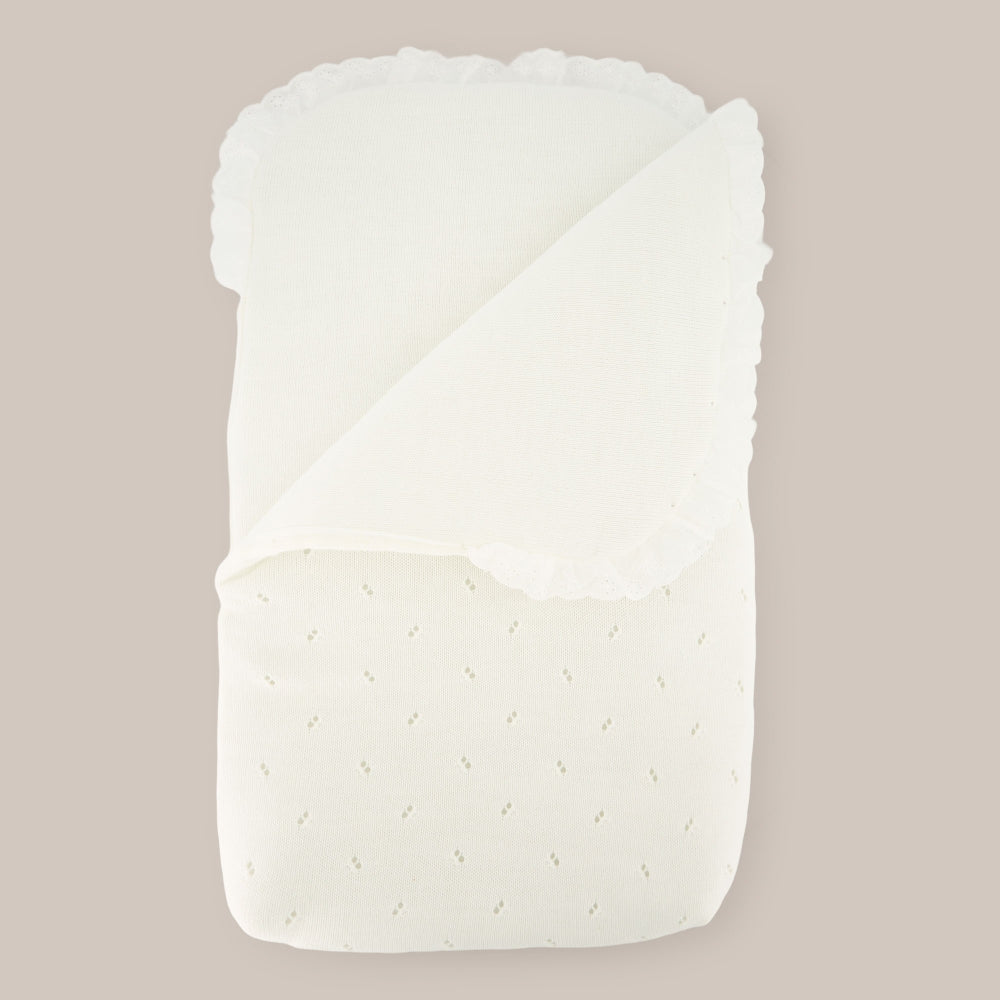 Este saco de punto para bebé está diseñado para brindar calidez y suavidad.