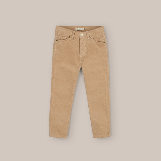 Pantalón largo para niño, de corte slim, confeccionado en suave algodón color nut. Cuenta con detalles funcionales de bolsillos, combinando comodidad y estilo en cada prenda.