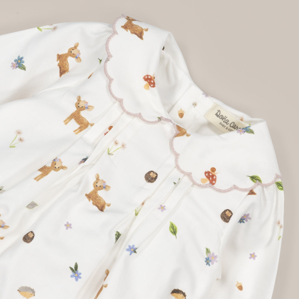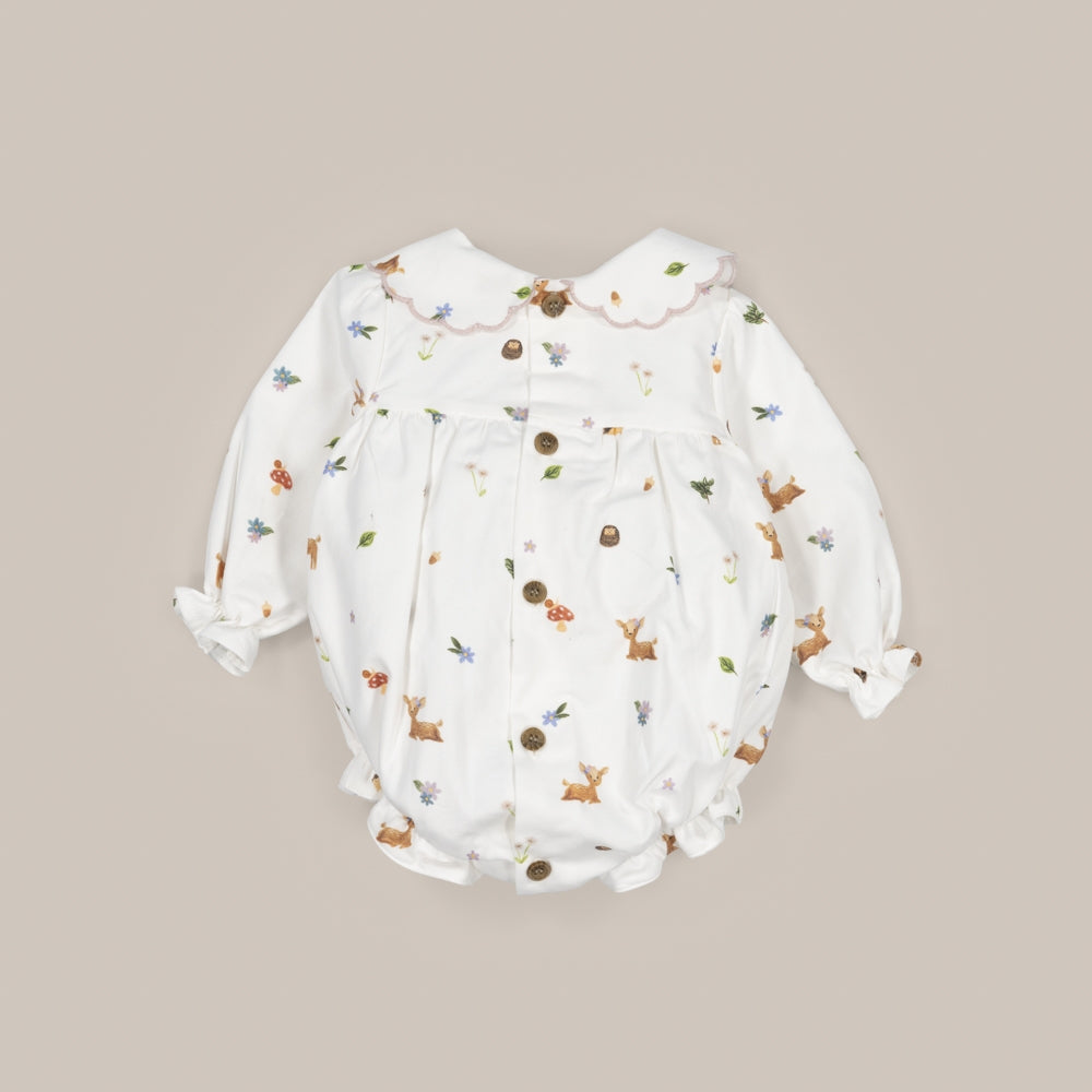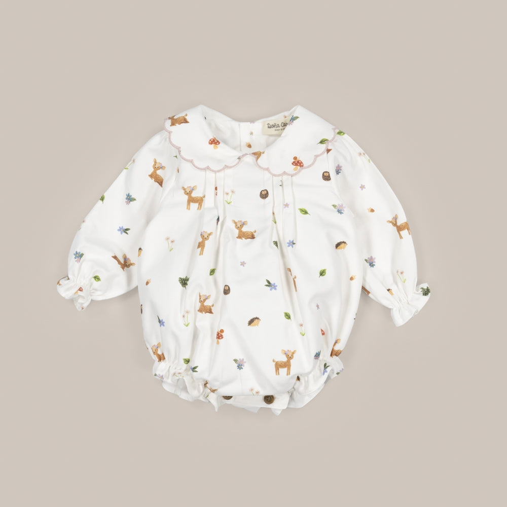 este traje de bebé combina la belleza de su tela con detalles cuidadosamente seleccionados, ofreciendo una opción práctica y encantadora para vestir al bebé con estilo y confort.