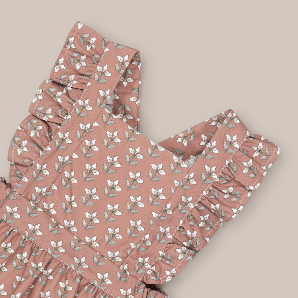 Además, los tirantes del peto pueden abrocharse en la parte trasera, proporcionando versatilidad y permitiendo ajustar la prenda de acuerdo con las necesidades específicas del bebé. Este diseño inteligente facilita el proceso de vestir al bebé, asegurando un ajuste cómodo y seguro.