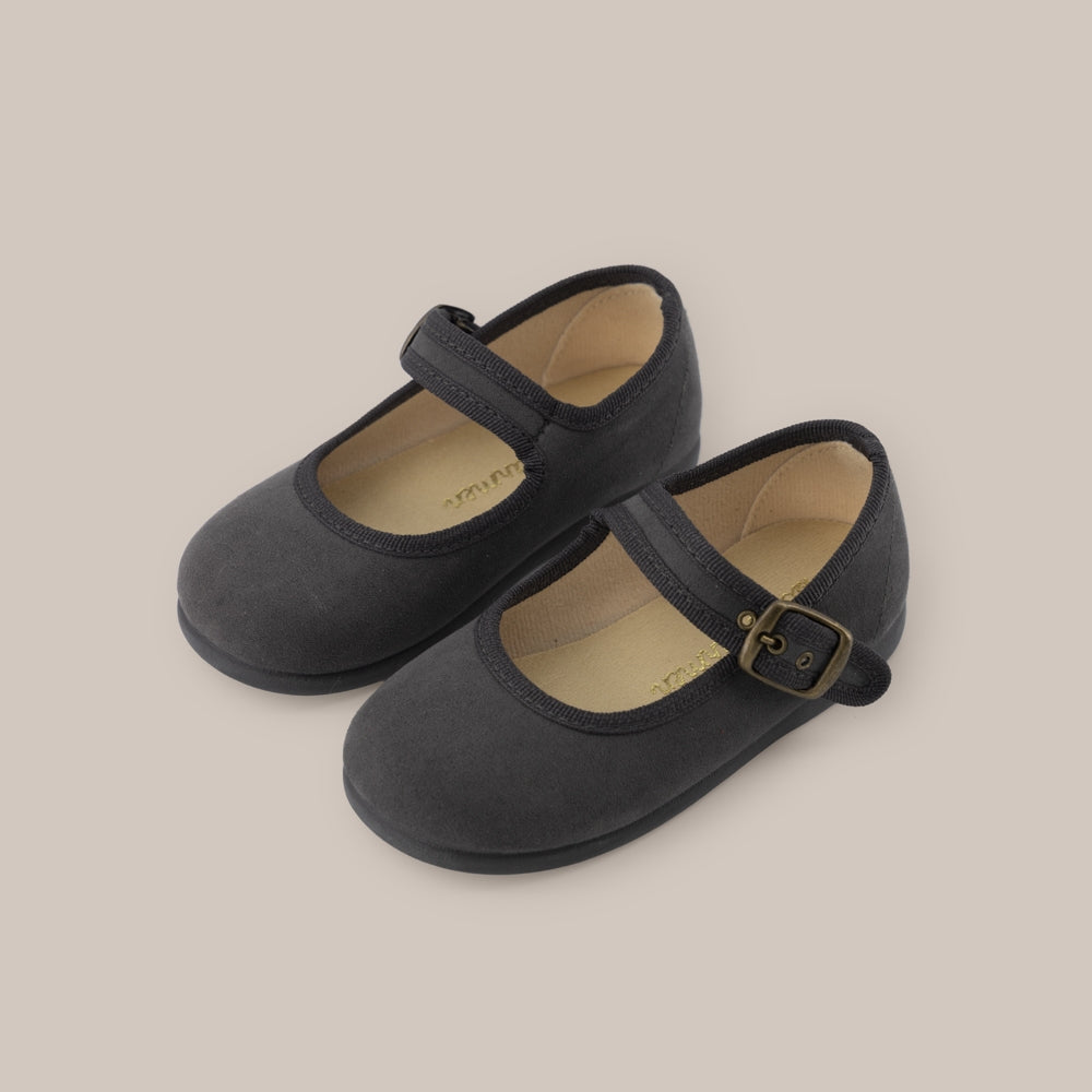 Mercedita de niña confeccionada en serratex. Cuenta con suela de goma rígida. Se cierra en el empeine con hebilla. Disponible en varios colores. Complemento perfecto para todo tipo de looks de otoño-invierno. Fabricado en españa.