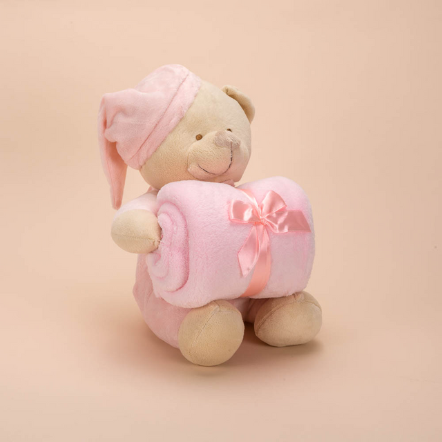 Soft baby blanket with bears inclined. A perfect detail to give away.