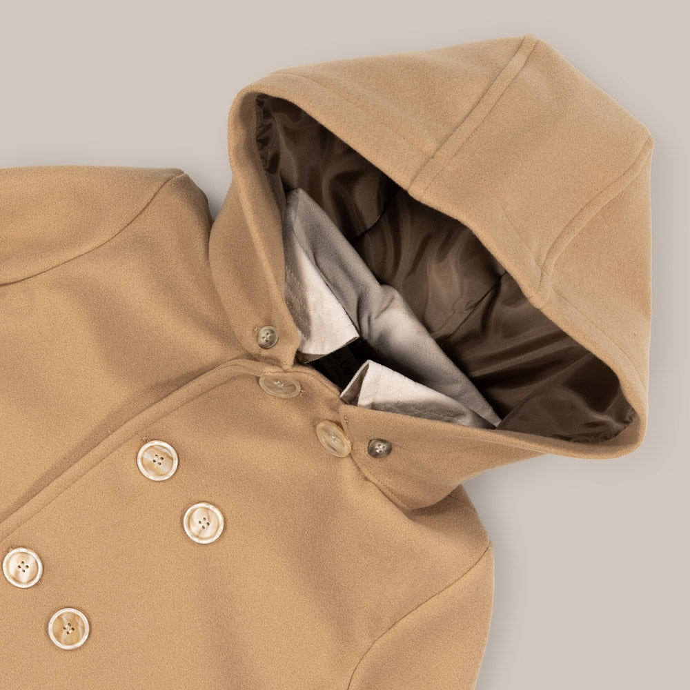 la trenca cuenta con una capucha integrada que brinda protección adicional contra el viento y la lluvia. la capucha está forrada con un suave material, ofreciendo comodidad extra y calidez.