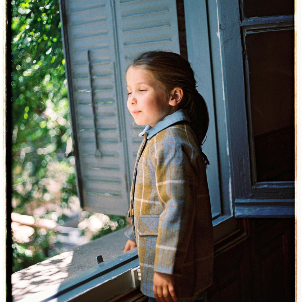 This children's cloth coat is an elegant and classic garment for the little ones. Its design combines the warmth of cloth with the elegance of a print of Checked, making it perfect for special occasions or to look stylish on cooler days.