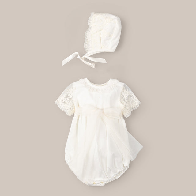 romper Baptism with tulle cape