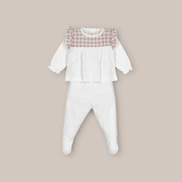 Baby suit formed by beautiful sweater with carefully thought details like his Vichy print, which contribute an extra style.