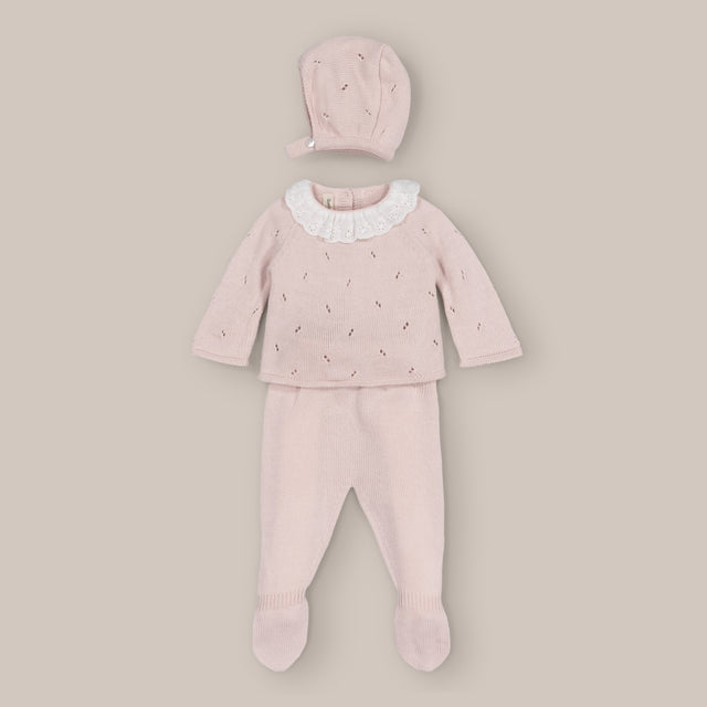 Very complete baby suit formed by beautiful sweater with carefully thought out details that provide an extra style.