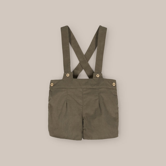 Su diseño con tirantes cruzados en la espalda aporta un aire tradicional y distinguido, mientras que los botones de madera permiten ajustarlos o retirarlos fácilmente. Los pliegues frontales añaden un toque de estilo atemporal que convierte este pantalón en una prenda versátil, tanto para combinar con camisas de vestir como con jerséis de punto.
