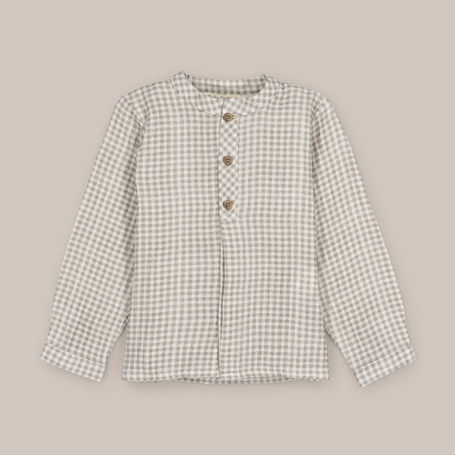 The front of the shirt is equipped with buttons, which not only adds a charming aesthetic element, but also facilitates to put and remove the garment, providing practicality to parents and autonomy to the boy.