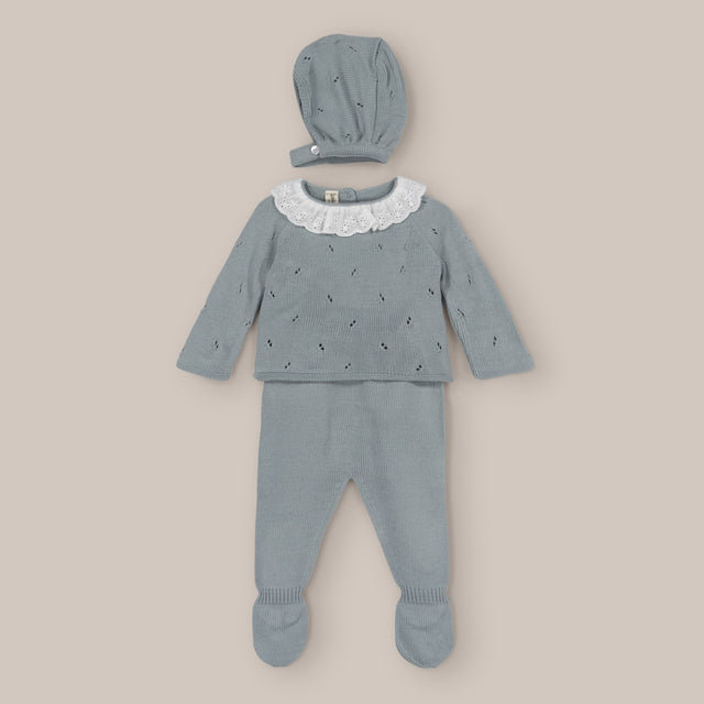 Very complete baby suit formed by beautiful sweater with carefully thought out details that provide an extra style.