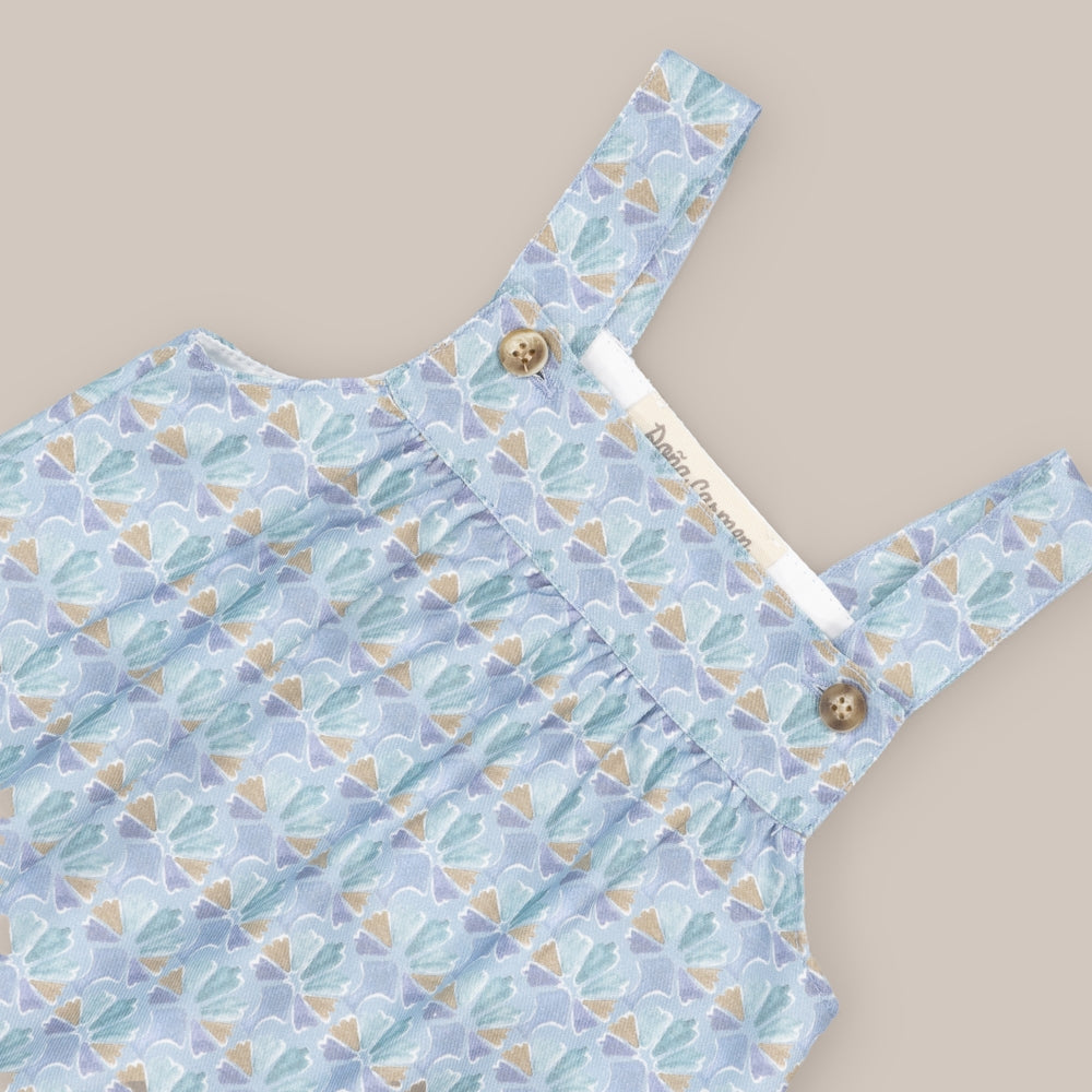 the lower buttoning of the dungaree makes the task of changing the baby easier, allowing quick and easy access to change diapers or dress them without having to remove the entire garment. This feature makes the baby dressing and caring experience more comfortable for both parents and baby.