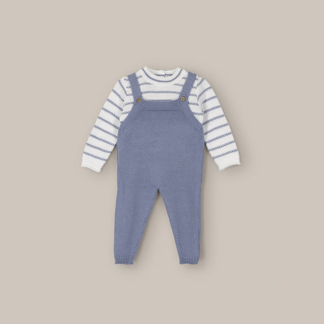 Made with attention to every detail, this set of dungaree And Jersey is the perfect choice to dress your little one with elegance and comfort.
