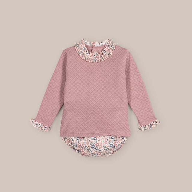 This girl's suit combines comfort and style, offering a practical and comfortable option for the season, ideal for keeping baby warm and fashionable.