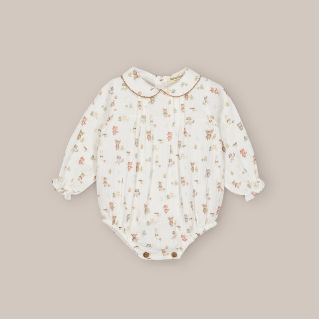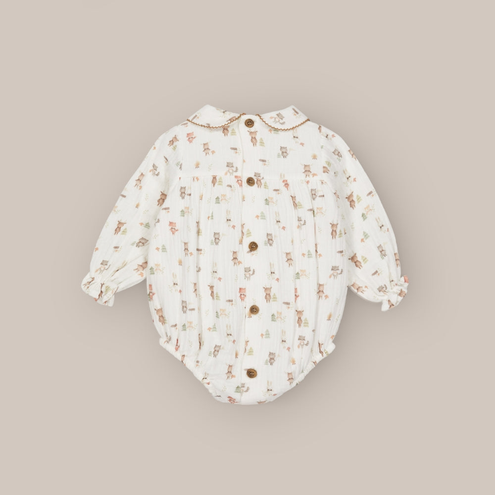 This romper 100% cotton baby romper is ideal for those who love traditional clothing for newborns with a modern touch. Its baby collar with a wave gives it a sweet and elegant look, while the back and bottom buttons make it easy to put on and change.
