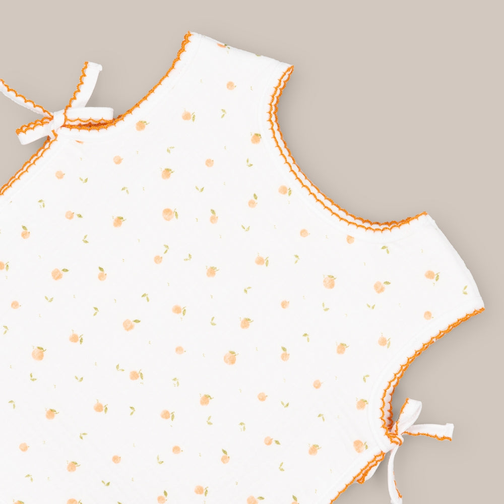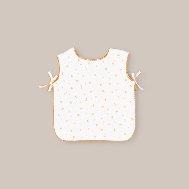 The soft bib in Bambula, a light and soft fabric, which presents a charming peach print.