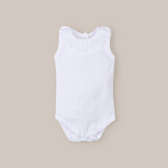 It has automatic closure in the back and between the legs that allows it to easily put it and change the diaper. It has a beautiful flying neck.