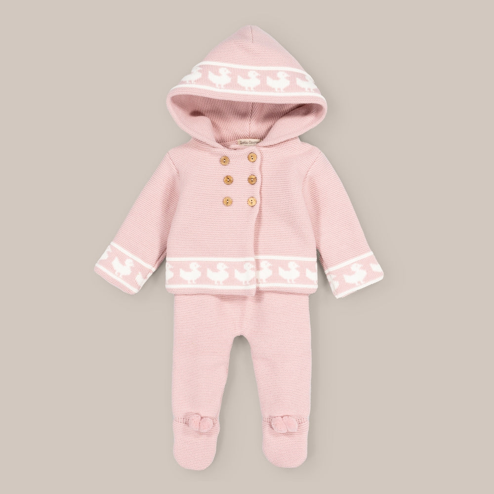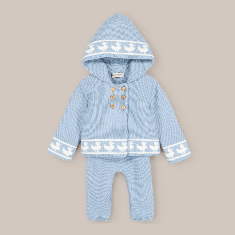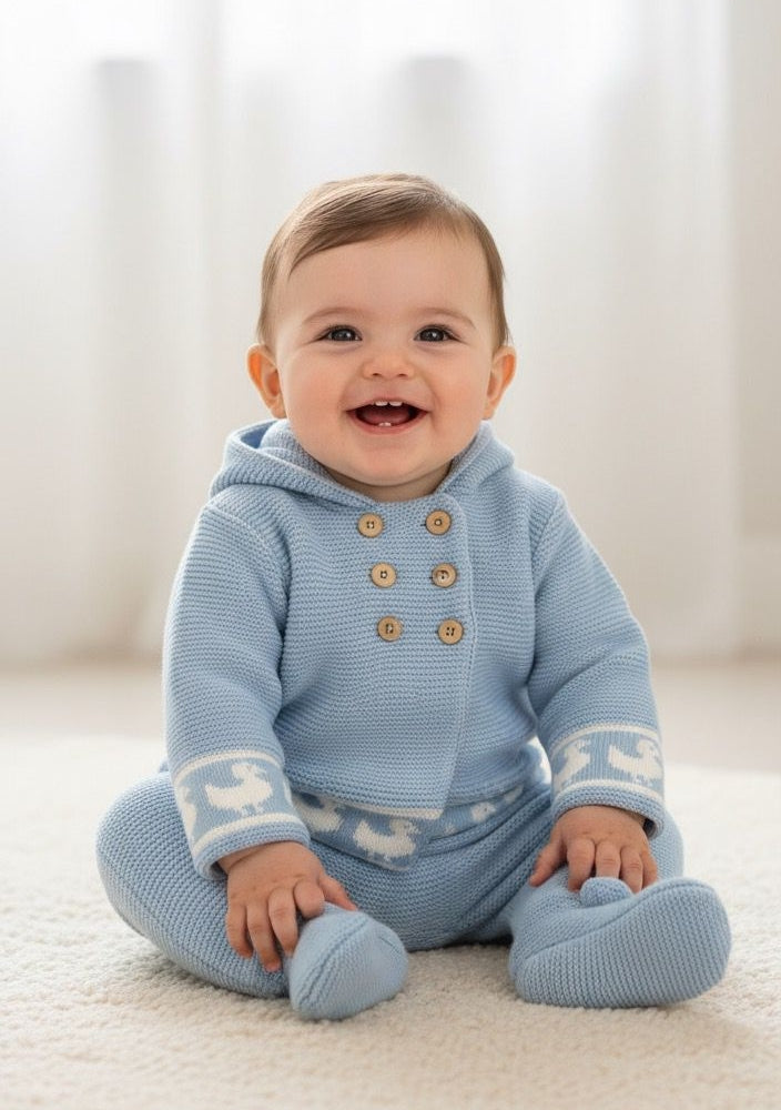 Cet adorable ensemble en tricot pour bébé est composé d'une veste et d'une polaire, parfaits pour garder votre petit au chaud et confortable avec style.