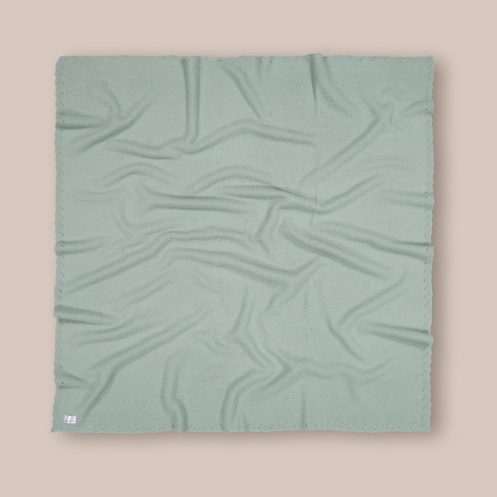 Son design avec des noppes réparties et une bordure ajourée artisanale apporte une touche traditionnelle et tendre, idéale pour les promenades, les moments de repos ou pour compléter la layette du bébé.