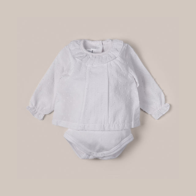 Corpo di cotone con camicia plumeti per Bambini manica lunga e collo volante.