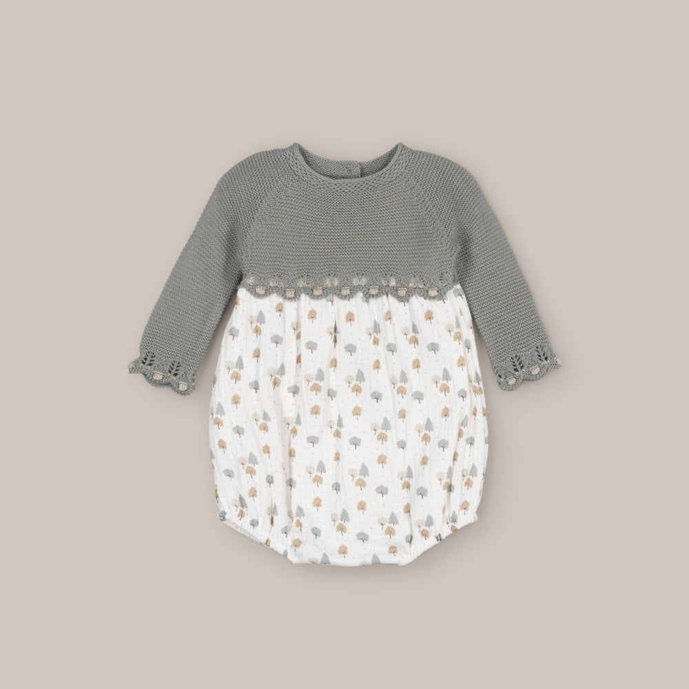 Este pelele de bebé combina la belleza de su tela con detalles cuidadosamente seleccionados, ofreciendo una opción práctica y encantadora para vestir al bebé con estilo y confort.
