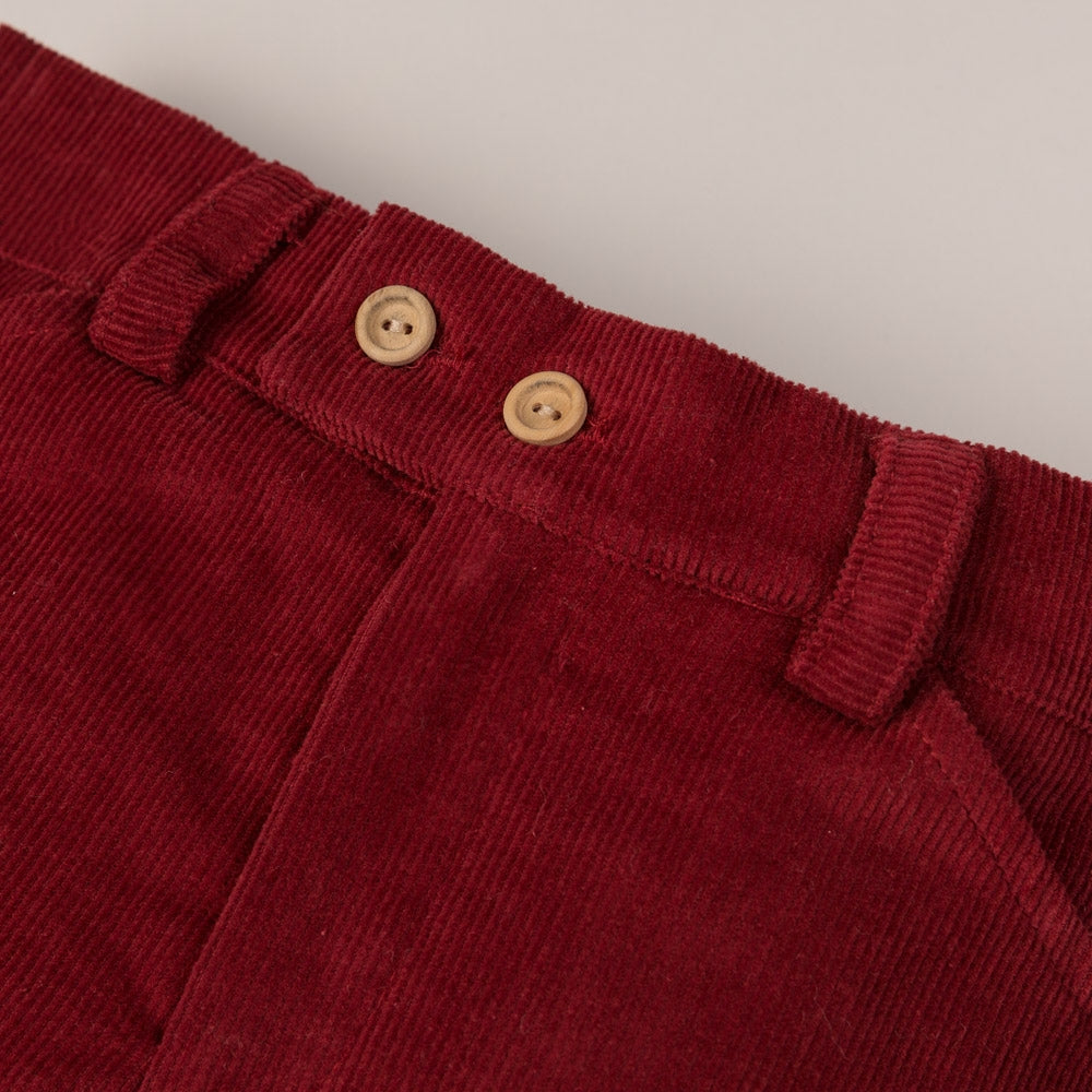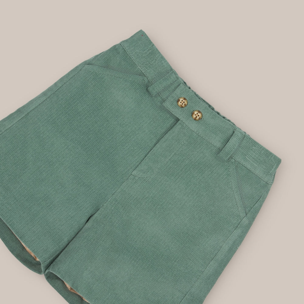Pantalón corto para niño confeccionado en tela de pana de algodón .Cierre delantero con doble botón. Goma en la parte trasera de la cintura para un mejor ajuste y forro interior.