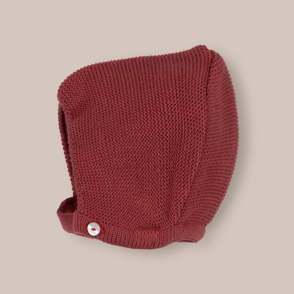 Capota de punto con cierre de botón en madera al cuello. disponible en varios colores.